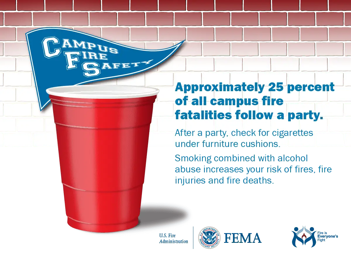 - Alcohol was a factor in 76 percent of fatal campus fires.